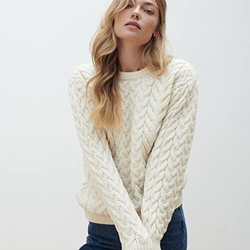 HOT ! Irish Sweater for Women Made in Ireland Supersoft Merino Wool Cable & Weave Aran Knit Pullover