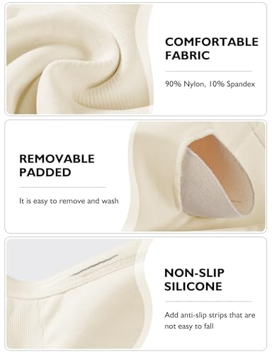 • Removable Lightweight Pads: Personalize your look with 2 pairs of detachable foam pads . The moldable cups create a smooth silhouette under clingy fabrics like silk or spandex, while the moisture-wicking lining prevents sweat marks. Easily hand-wash pads separately and reinsert them through the hidden inner pockets. Perfect for modesty under sheer blouses or adding curves to low-cut tops. The bralette for women is must-have in your wardrobe