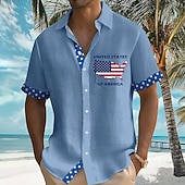 More information about Independence Day Men's Map US Flag Patriotic Shirt Summer Shirt Button Up Shirt Short Sleeve Fashion Casual Vacation Holiday Streetwear Summer Turndown 3D Print Front One Pocket Linen Like Shirt Blue