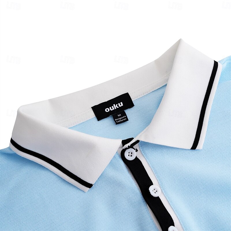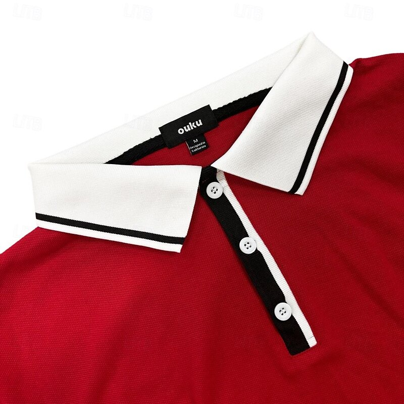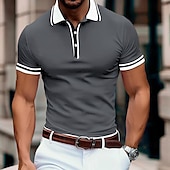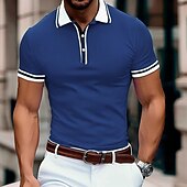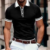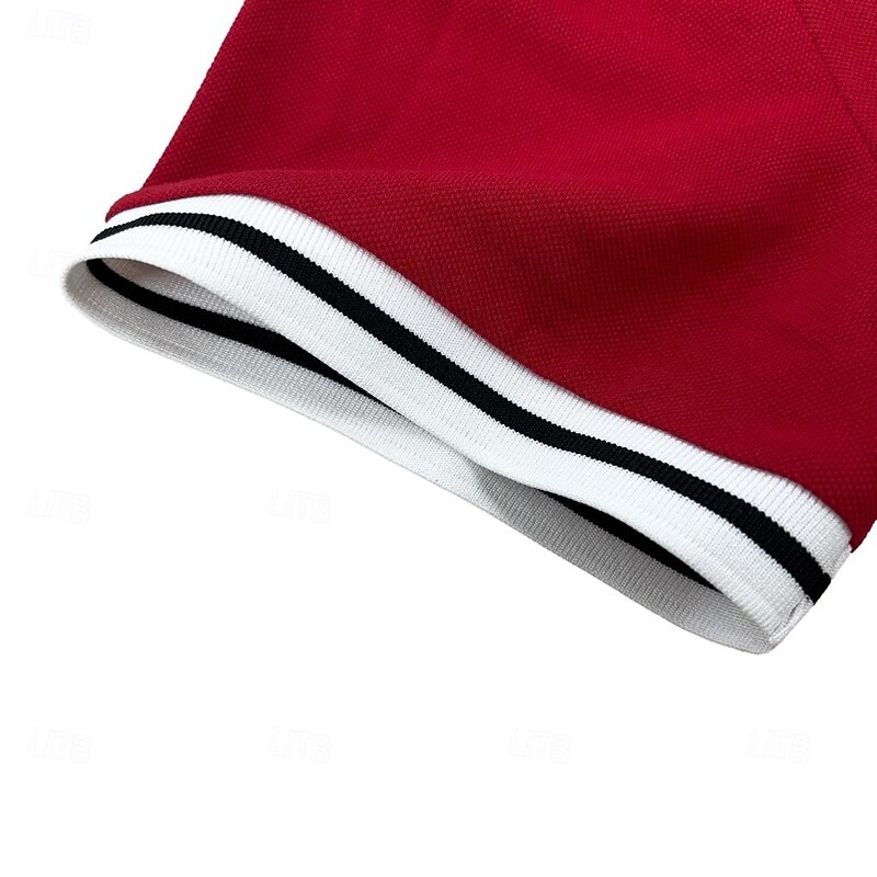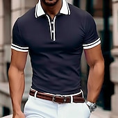 More information about Men's Business Polo Pique Polo Shirt Business Casual Ribbed Polo Collar Classic Short Sleeve Color Block Patchwork Embroidered Summer Spring & Fall Dark Grey Black Burgundy Navy Blue Royal Blue