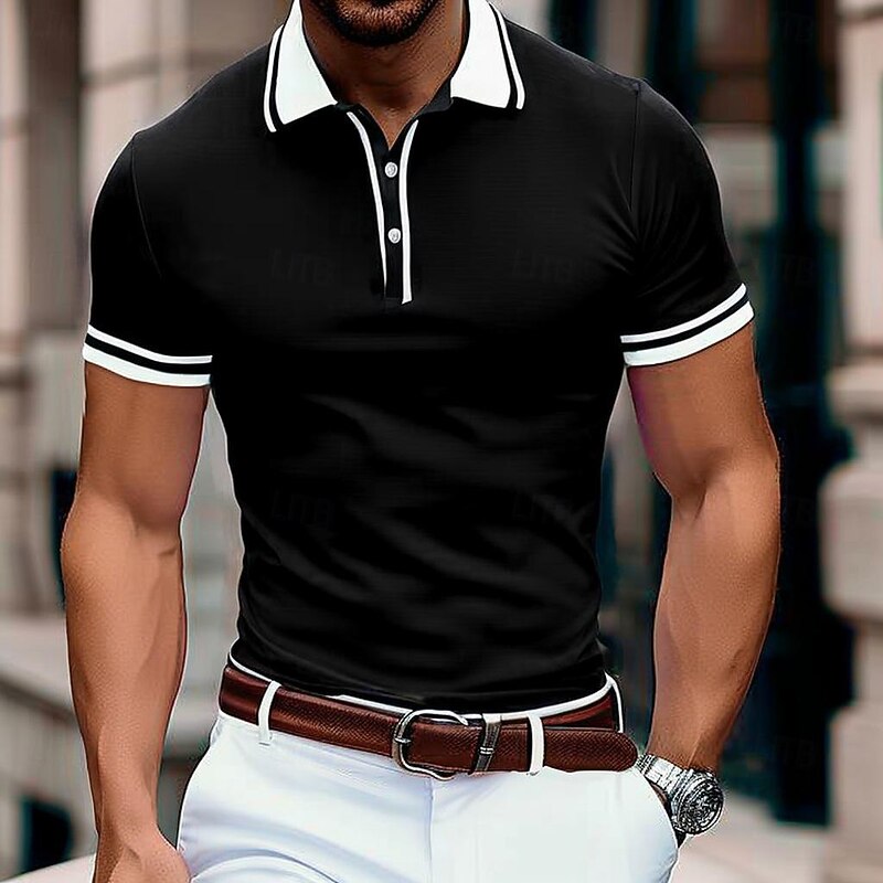 HOT ! Men's Business Polo Pique Polo Shirt Business Casual Ribbed Polo Collar Classic Short Sleeve Color Block Patchwork Embroidered Summer Spring & Fall Dark Grey Black Burgundy Navy Blue Royal Blue
