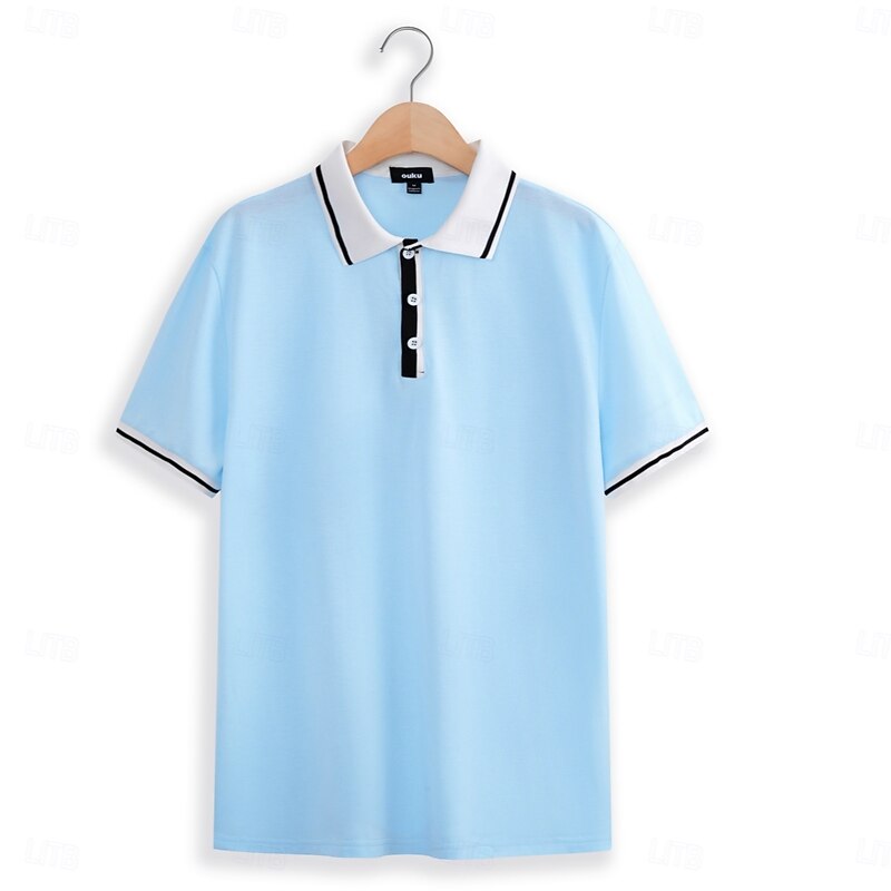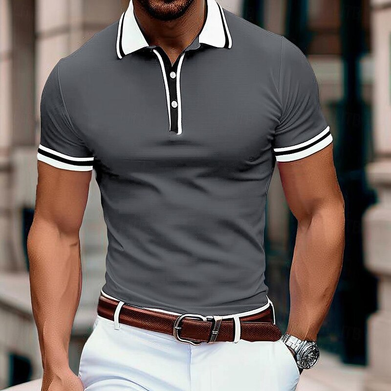 Men's Business Polo Pique Polo Shirt Business Casual Ribbed Polo Collar Classic Short Sleeve Color Block Patchwork Embroidered Summer Spring &  Fall Dark Grey Black Burgundy Navy Blue Royal Blue 25