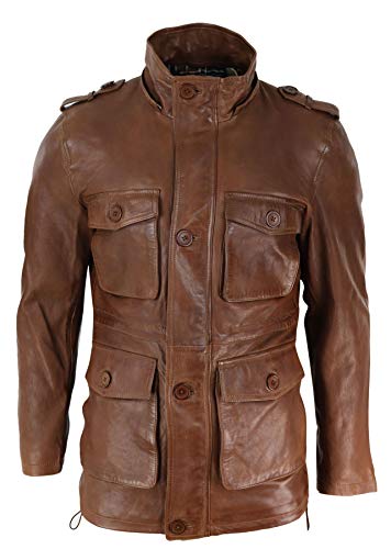 • Mens Real Leather Safari Jacket Mid Length 3/4