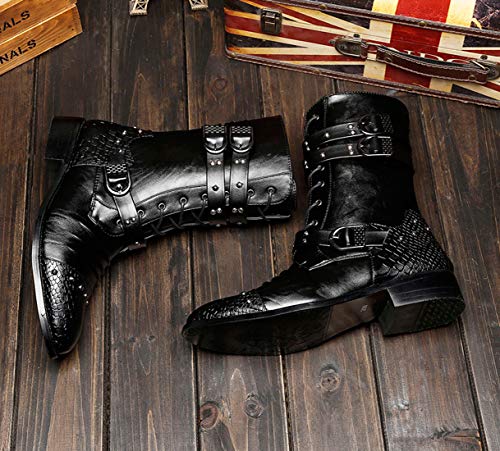 Santimon Men's Boots Retro Studded Rivet Buckle Zipper Western Motorcycle Combat Boot Heavy Metal Punk Rock Black 5