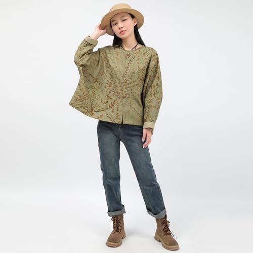 Women's Casual Jacket-Shirt Autumn Botanical Print Linen Long Sleeve Top Breathable Wind Resistant Outerwear Coat 6