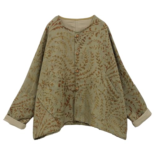 More information about Women's Casual Jacket-Shirt Autumn Botanical Print Linen Long Sleeve Top Breathable Wind Resistant Outerwear Coat