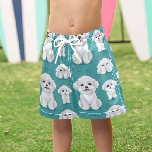 Pigsaly Boys' Swim Board Shorts White Bichon Frize Dog Boy's Swim Trunks Kids Swimwear XS 4