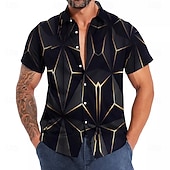 More information about Men's Geometric Grid / Plaid Shirt Button Up Shirt Short Sleeve Fashion Casual Vacation Holiday Streetwear Summer Spring Turndown 3D Print Collared Shirts Black Yellow