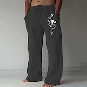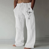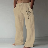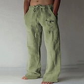 Men's Feathers Compass Pants Trousers Mid Waist Casual Outdoor Street Going out Spring & Fall Black White Green