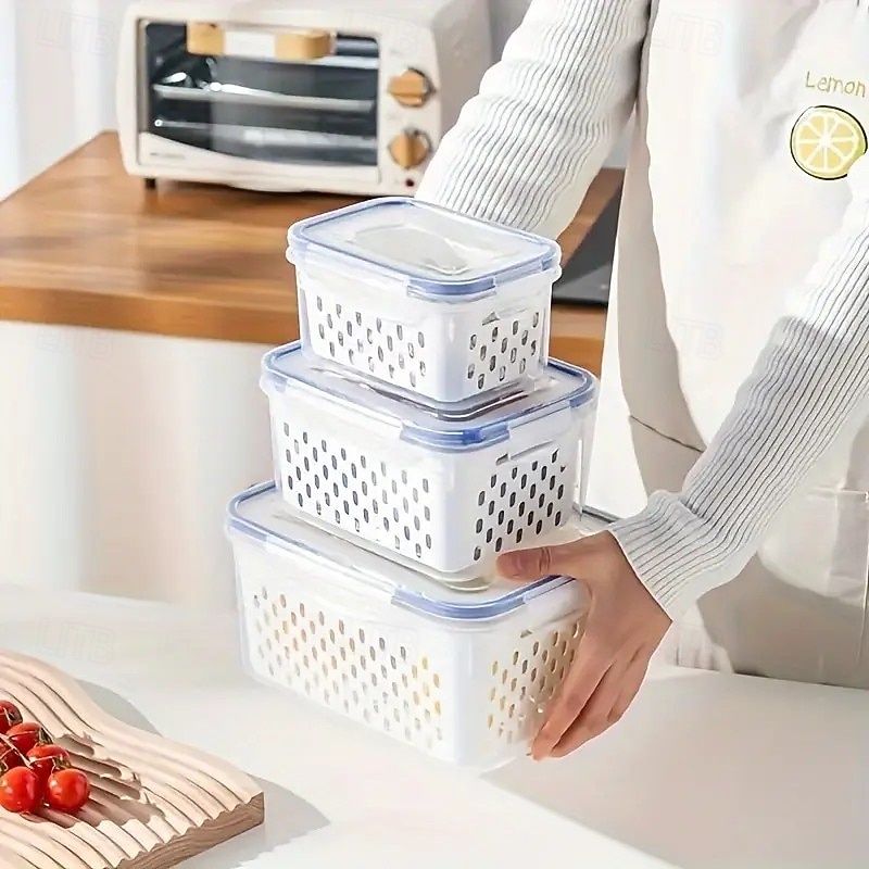 HOT ! 6-Pack BPA-Free Polypropylene Food Storage Containers with Lids, Stackable Refrigerator Organizer Bins with Drain Tray for Fruits, Vegetables, and Dry Goods, Versatile Kitchen Storage System Ideal for Camping and Dining