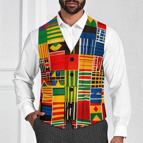 African Kente Cloth Ethnic Art Pattern Mens Suit Vest Slim Fit Button Up V Neck Business Waistcoat Sleeveless Dressy Top 6
