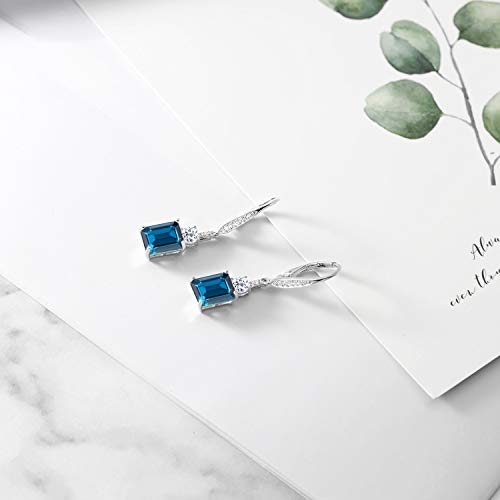 Gem Stone King Drop Dangle Gemstone Birthstone and White Topaz Earrings for Women | 925 Sterling Silver | Emerald Cut 9X7MM | Fine Jewelry Gifts for Her Mom Anniversary Wedding 4