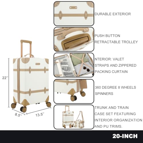 HOT ! Vintage-Inspired White 2-Pack Hardside Trunk & Train Case With Brown Accents