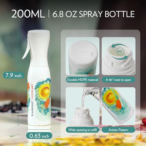 More information about FLAIROSOL InspireArt, Continuous Spray Bottle - Ultra Fine Mist Water Sprayer for Hairstyling, Cleaning, Arts & Crafts, Versatile Spray Bottle, Patented Technology, 6.8 OZ (White Bottle, Green Print)