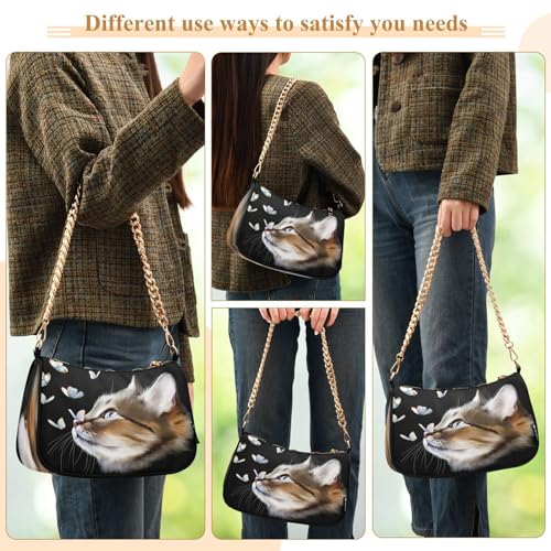 Shoulder Bags for Women Cute Kitty Cat with Butterfly Hobo Tote Handbag Small Clutch Purse with Zipper Closure 5