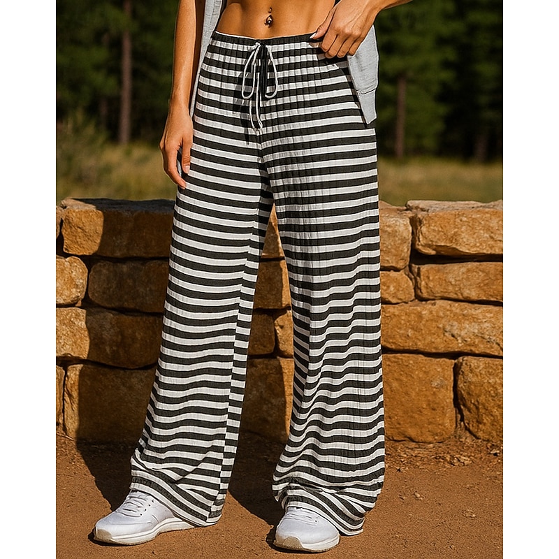 Women's Sports Lounge Pants Casual Straight Leg Pants Drawstring High Waist Bottoms Athleisure Gym Workout Fall Lightweight Gym Workout Outdoor Running Loose Fit Sportswear Activewear Stripes Black 10