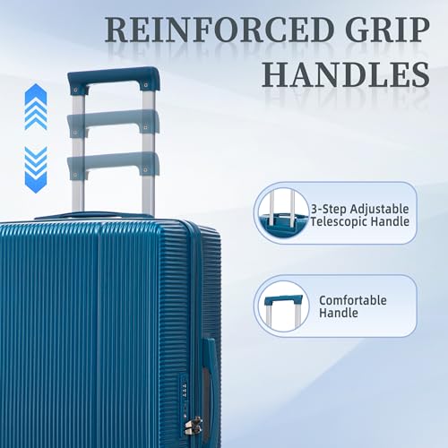 20"/24"/28" 3-Piece ABS Spinner Luggage Set with TSA-Approved Combination Lock & 360° Smooth-Rolling Wheels, Lightweight Yet Durable Carry-On Suitcase Set with Matching Colors (Navy) 5