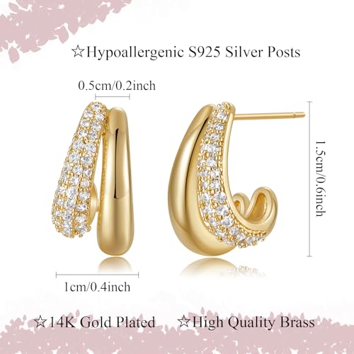 • Luxurious Double Stud Design: Featuring double layered studs with 30% more pave zircons than standard designs, creating intense sparkle.The chunky rounded silhouette enhances facial contours while maintaining lightweight comfort for all-day wear.