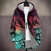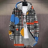 More information about Men Geometric Pattern Winter Coat Fleece Jacket Coat Thermal Warm Comfortable Casual Daily Wear Zipper Pocket 3D Print Fall Winter Hooded Long Sleeve Black Green
