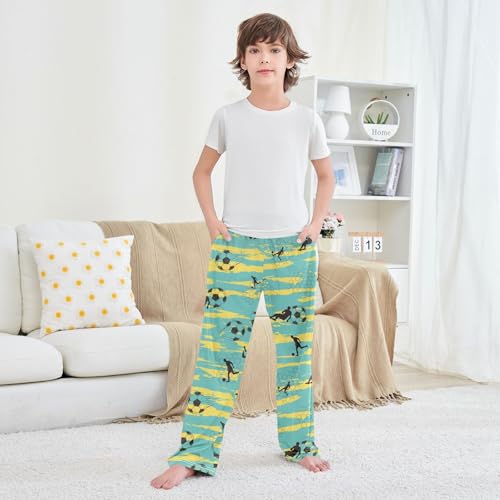 Boys' Pants Soccer Men Silhouette Blue Yellow Long Bottoms Jogger Pants Elastic Waist Trousers with Pockets S-XL 5