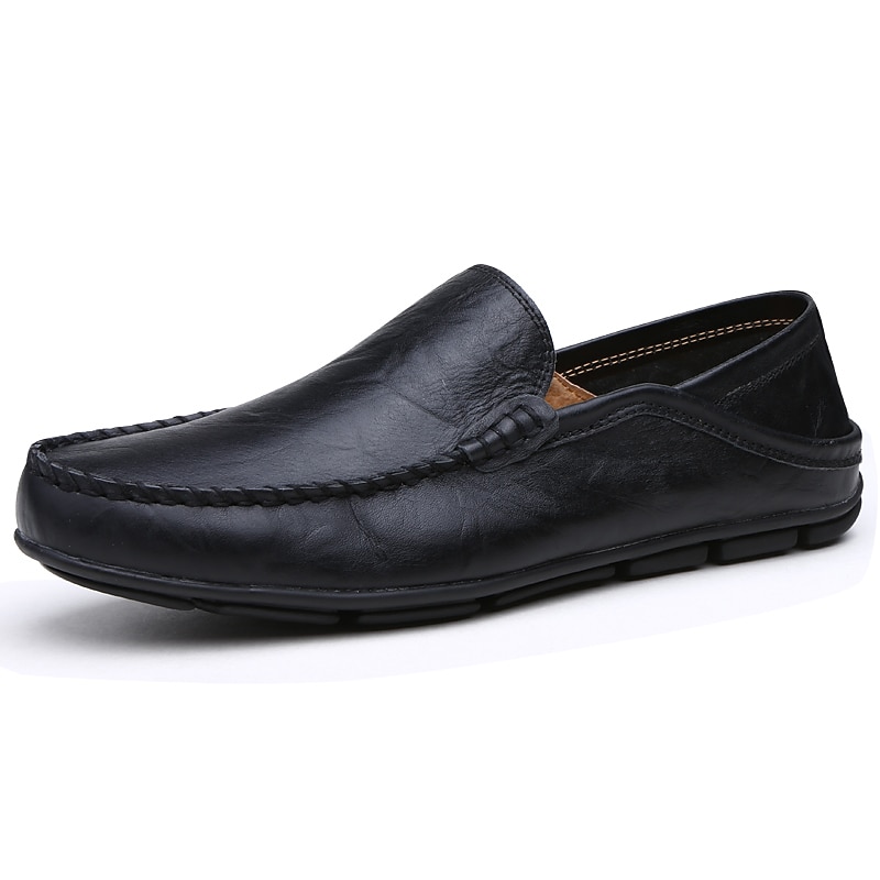 Highlights [Material] : Crafted from high-quality cowhide and split leather, these men's loafers combine durability with a sleek and smooth finish. The genuine leather upper contributes to both style and function, providing breathability for extended wear. [Silhouette] : With a classic moccasin design, these loafers feature a pointed toe shape that adds a touch of elegance to their casual appearance. The slip-on style ensures easy wear and removal, while the rubber outsole offers flexibility and excellent grip. [Design Highlights] : Intricate hand-stitched details around the toe and a sleek, solid-colored appearance set these loafers apart. The splicing embellishments add a sophisticated touch, making these shoes a standout addition to any wardrobe. [Occasions] : Perfect for a variety of settings, these loafers are versatile enough for daily wear, office environments, and even cycling activities. Their blend of casual and business style makes them suitable for both leisurely outings and more formal occasions. [Size Range] : Available in a wide range of sizes from 38 to 47, these loafers accommodate various foot sizes. With options for UK Size 14.5 and EU Size 50, finding the perfect fit for comfort and style is made easy.
