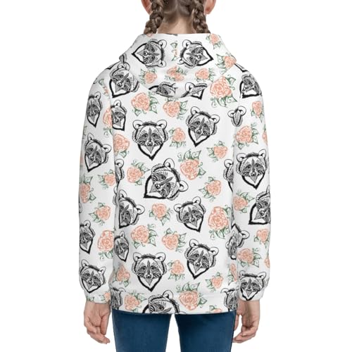 Raccoon and Flower Kids Pullover Hoodies Boys Zip Up Sweatshirts Girls Athletic Clothes with Pocket 5
