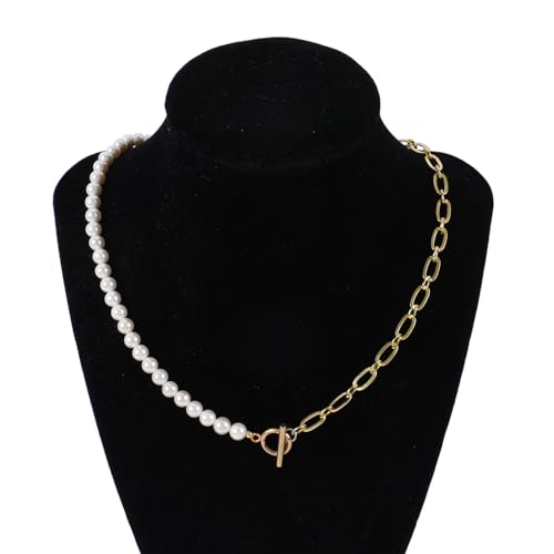 HOT ! Pearl Necklace for Women Girls, Paper Clip Half Link Cross Disco Ball Pearl Chain Necklaces, Pearl Choker Chunky Necklace Dainty Pearl Chain OT Necklace Fashion Trendy Jewelry Birthday Gifts for Her