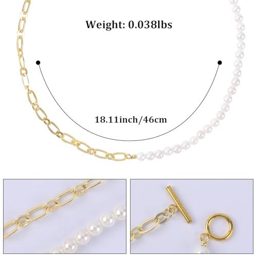 Pearl Necklace for Women Girls, Paper Clip Half Link Cross Disco Ball Pearl Chain Necklaces, Pearl Choker Chunky Necklace Dainty Pearl Chain OT Necklace Fashion Trendy Jewelry Birthday Gifts for Her 4