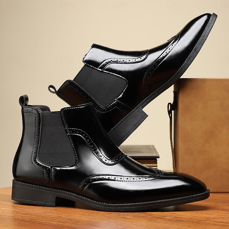 HOT ! Men's Burgundy Faux Leather Wingtip Chelsea Boots – Classic Brogue Ankle Boots for Gentlemen, Fall Outfits and Semi-Formal Events