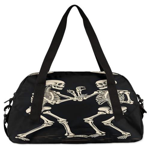 HOT ! Rock and Roll Skull Skeleton Kids Duffle Bag Boys Girls Small Sport Dance Gym Bag for Overnight Travel Weekender Carry On