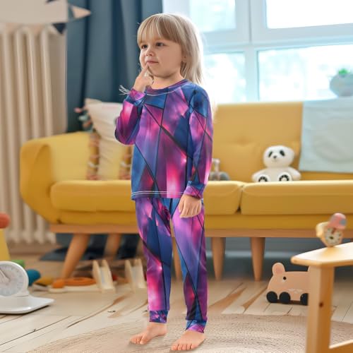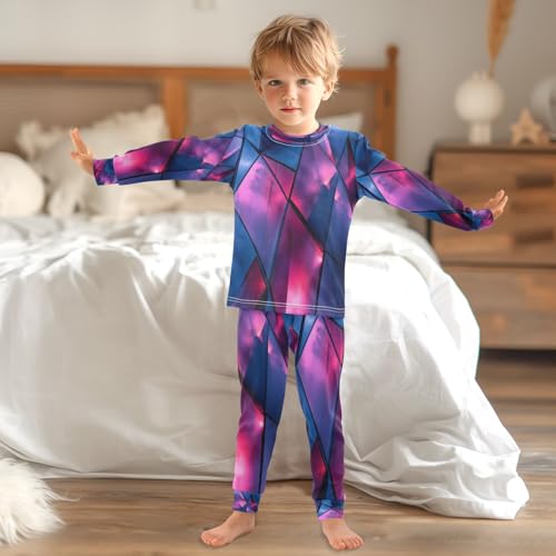 Pajama Sets Long Sleeve Blue Geometric Triangles Soft Comfy Sleepwear 2 Piece PJS 3-8T 1