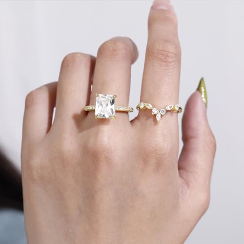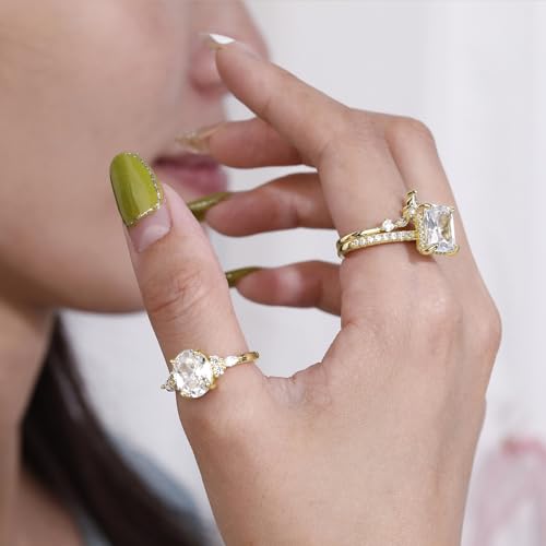• Trendy Gold Ring Set: This wedding rings for women includes three gold rings, a 4 carat(8 x10mm) radiant cut ring, a 3 carat (8 x 10mm)vintage oval marquise ring, and a dainty pear round ring, which is the best choice for stacking