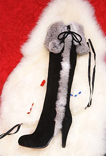 APHNUS Womens Boots Winter Fur Snow Tall Over The Knee Thigh High Boots 5