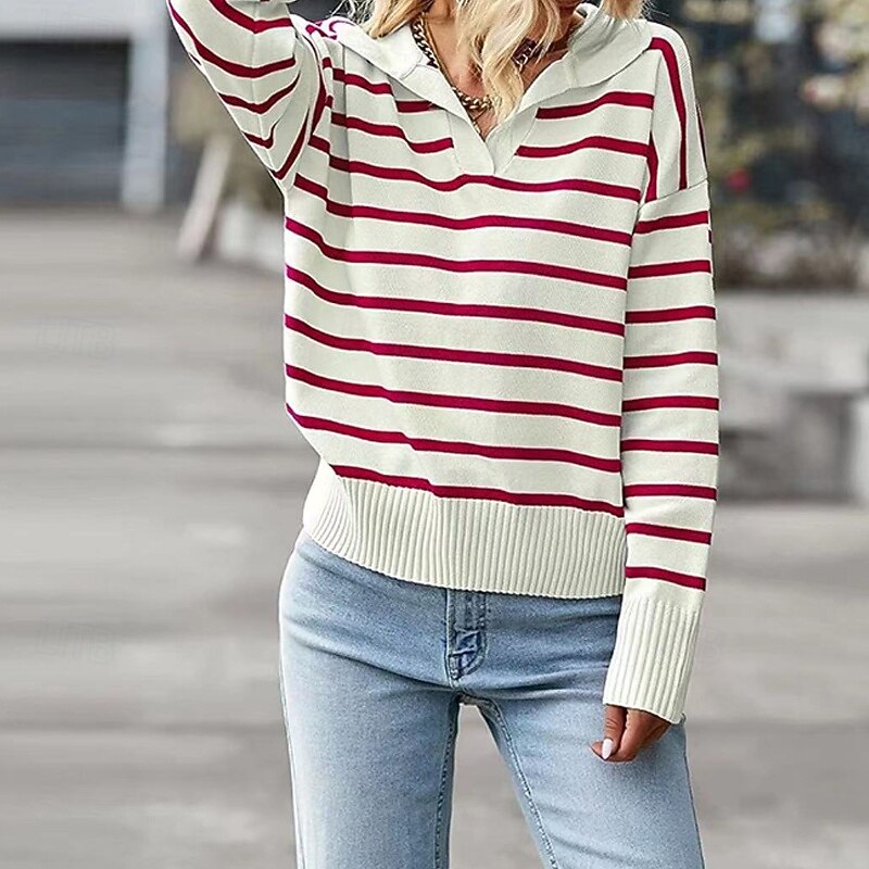 HOT ! Women's Sweater Pullover Casual Soft Striped Ribbed V Neck Knitted Long Sleeve Regular Tops Knit Outdoor Going out Weekend Red Blue Fall