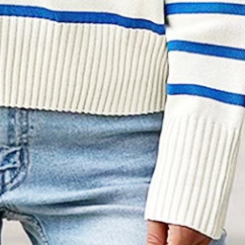 More information about Women's Sweater Pullover Casual Soft Striped Ribbed V Neck Knitted Long Sleeve Regular Tops Knit Outdoor Going out Weekend Red Blue Fall