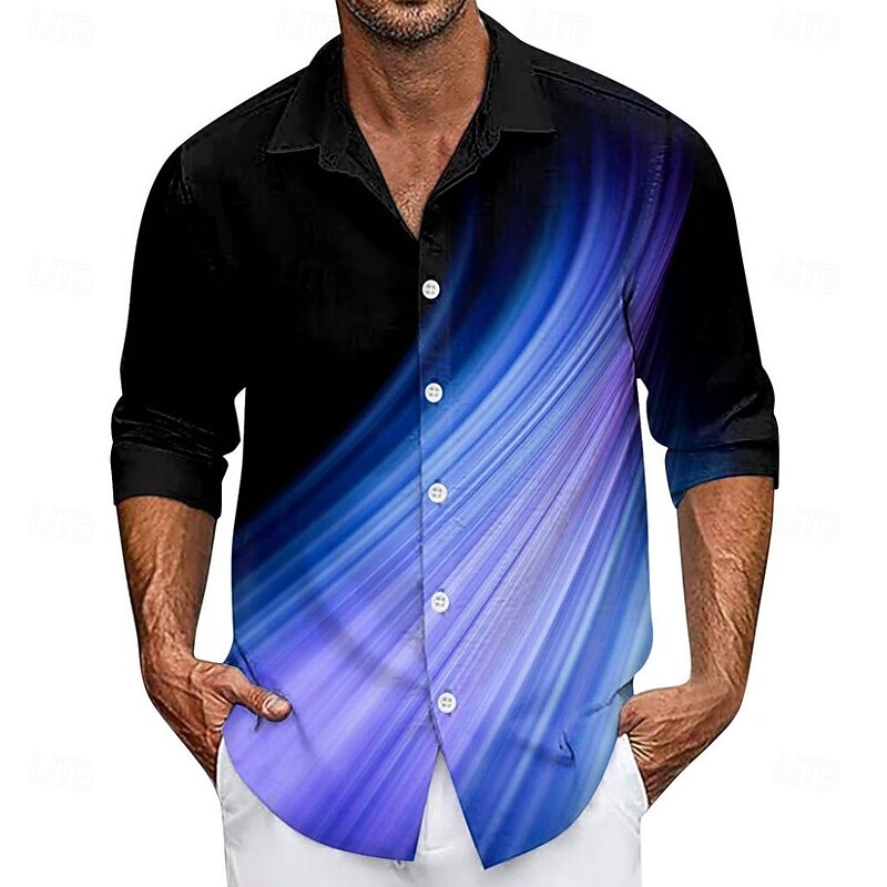 More information about Men's Gradient Lines / Waves Shirt Button Up Shirt Casual Dress Shirt Long Sleeve Fashion Casual Vacation Daily Streetwear Summer Spring Turndown 3D Print Collared Shirts Red Blue Purple Gold Green