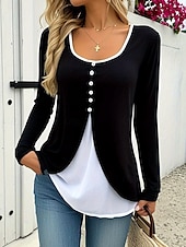 More information about Women's T Shirt Solid Color Color Block Plain Vintage Stylish Classic Long Sleeve Crew Neck Regular Tops Daily Buttons Print Tiered Black and White Spring Fall Winter