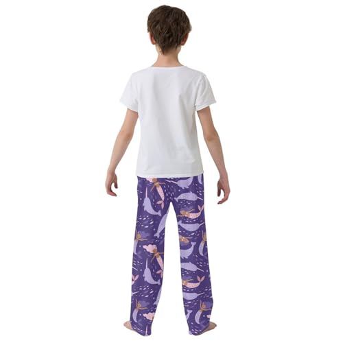 HOT ! Boys' Pants Cute Cartoon Mermaid Narwhal Long Bottoms Jogger Pants Elastic Waist Trousers with Pockets S-XL