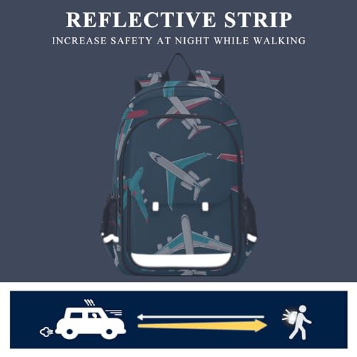 Airplanes Pattern Backpack School Backpack Lightweight Laptop Backpack Student Book Bag with Reflective Stripes 4