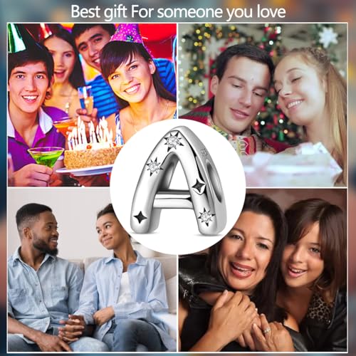 Sterling Silver Letter Charms For Bracelets, Initial Charms Fit For Pandora Bracelet, Hypoallergenic Bead Charm For Jewelry Diy Gifts For Women 4