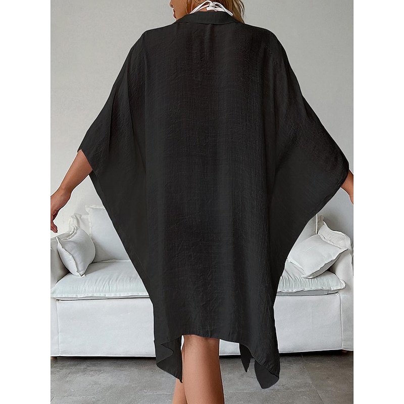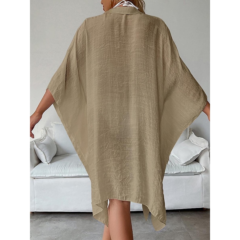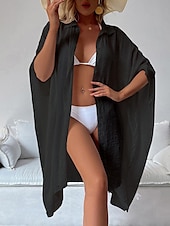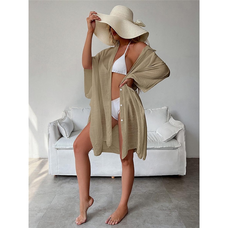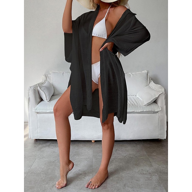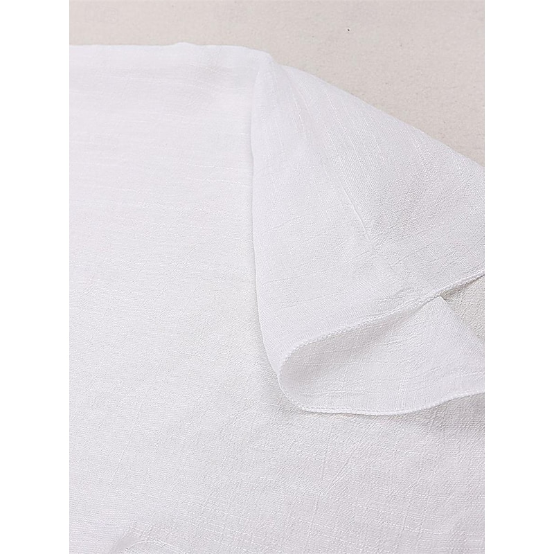 Highlights [Fabric]: Crafted from light and airy cotton, this women's white shirt dress is perfect for warm spring and summer days. The breathable material ensures comfort, while the slightly crinkled texture adds a touch of casual elegance. [Fit]: Featuring a loose fit design, this shirt dress drapes effortlessly on the body, providing a comfortable and relaxed silhouette that's ideal for laid-back beach vibes and vacation settings. [Design Highlights]: The dress includes a classic shirt collar and button-down front, adding a modern twist to this timeless piece. The wide, flowy long sleeves enhance its easy-going, chic style, and the mini dress length offers a playful and youthful edge. [Occasions]: Versatile and stylish, this white dress is perfect for vacation getaways, beach outings, and casual summer or spring gatherings. Pair it with a sun hat or sandals for a complete, fashionable look. [Size Range]: Available in a variety of sizes including M, this dress caters to a range of body types. Suitable for anyone looking for a basic yet stylish wardrobe essential.