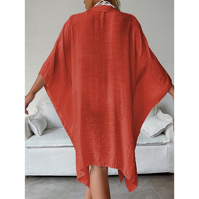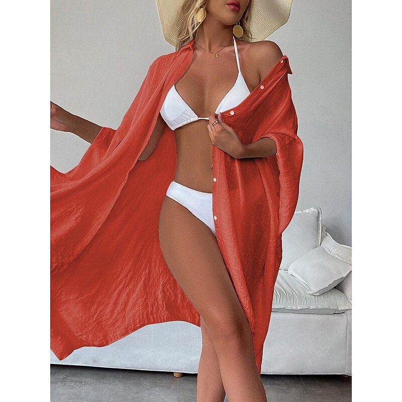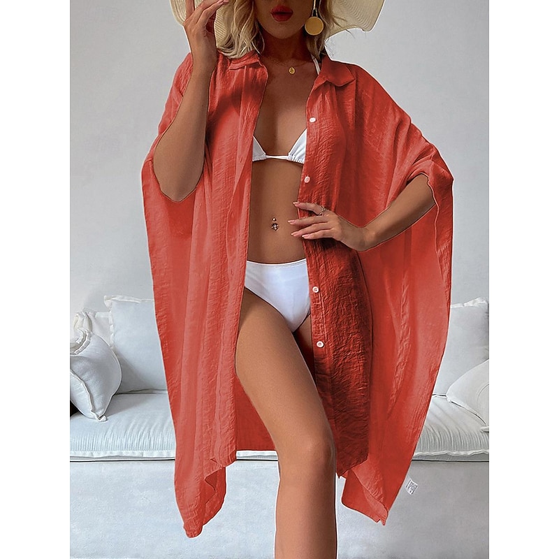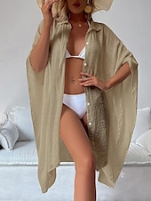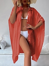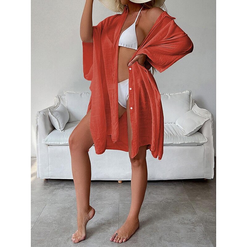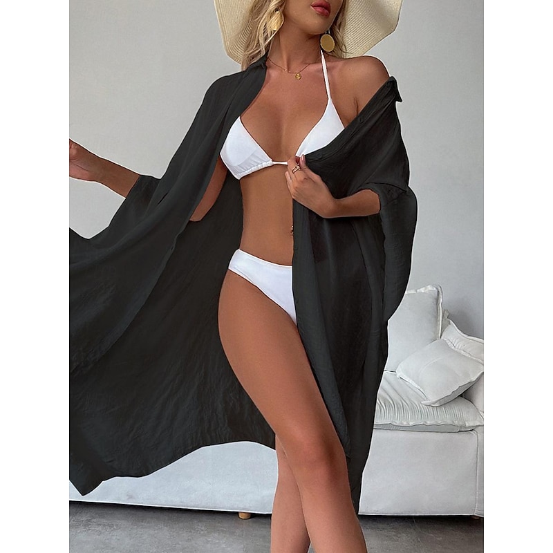 Highlights [Fabric]: Crafted from light and airy cotton, this women's white shirt dress is perfect for warm spring and summer days. The breathable material ensures comfort, while the slightly crinkled texture adds a touch of casual elegance. [Fit]: Featuring a loose fit design, this shirt dress drapes effortlessly on the body, providing a comfortable and relaxed silhouette that's ideal for laid-back beach vibes and vacation settings. [Design Highlights]: The dress includes a classic shirt collar and button-down front, adding a modern twist to this timeless piece. The wide, flowy long sleeves enhance its easy-going, chic style, and the mini dress length offers a playful and youthful edge. [Occasions]: Versatile and stylish, this white dress is perfect for vacation getaways, beach outings, and casual summer or spring gatherings. Pair it with a sun hat or sandals for a complete, fashionable look. [Size Range]: Available in a variety of sizes including M, this dress caters to a range of body types. Suitable for anyone looking for a basic yet stylish wardrobe essential.
