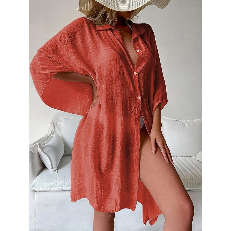 More information about Women's White Dress Shirt Dress Mini Dress Vacation Beach Cotton Basic Modern Shirt Collar Button Long Sleeve Summer Spring Loose Fit Plain