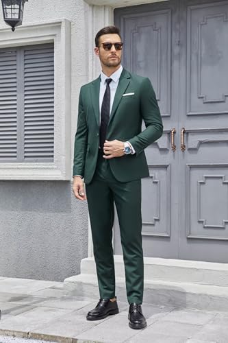 Mens Slim Fit Suits 2 Piece Wedding Suit for Men Groomsmen Suit One Button Blazer Pants Formal Prom Suit 2