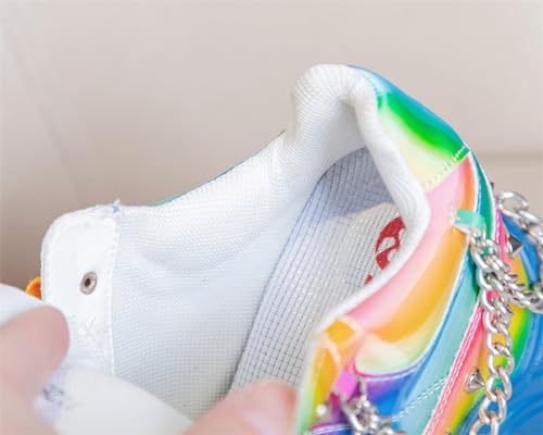 Spring Autumn Height Increasing Platform Metal Chain Rivet Genuine Leather Women Rainbow Color Sneakers Shoes Ladies Wedges Pumps 2401 5