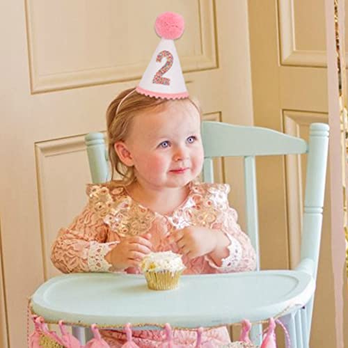 Birthday Hat for Girls - Glitter Birthday Hat with Pink Pom Topper, Birthday Decoration for Girls 2