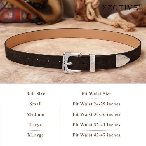 XZQTIVE Women Western Belt For Cowgirl Cowboy Suede Belt For Pants Jeans Vintage Leather Belts With Silver Carved Buckle 3