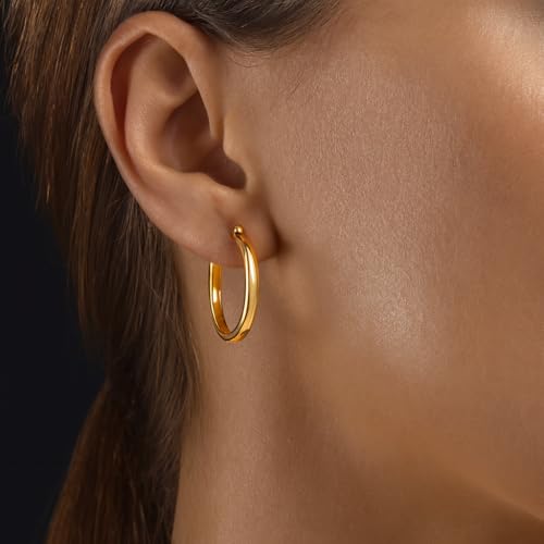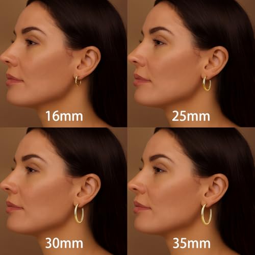 14K Gold Small Hoop Earrings for Women, U-Shaped Design, 17/25/30/35mm, Perfect for Everyday Wear 7