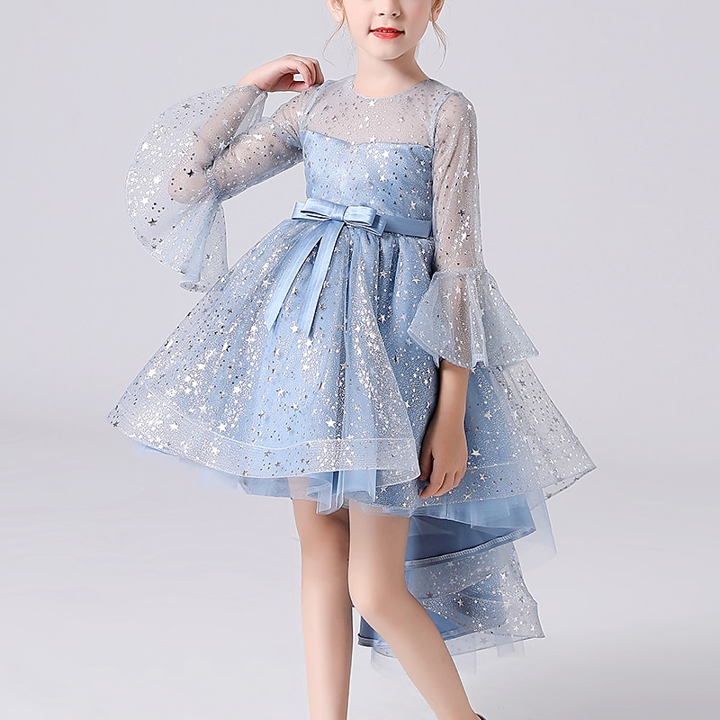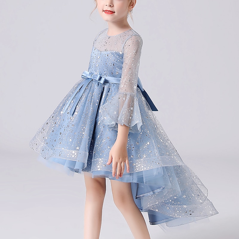 HOT ! Kids Girls' Dress Sequin Long Sleeve Party Birthday Graduation Sparkle Princess Sweet Polyester Midi 4-13 Years Red Blue