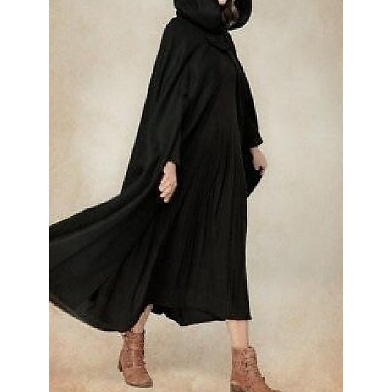 More information about Women's Cloak / Capes Outdoor Daily Wear Going out Fall Winter Long Coat Regular Fit Windproof Warm Stylish Classic Style Casual Jacket 3/4 Length Sleeve Plain Oversize Black Blue Army Green